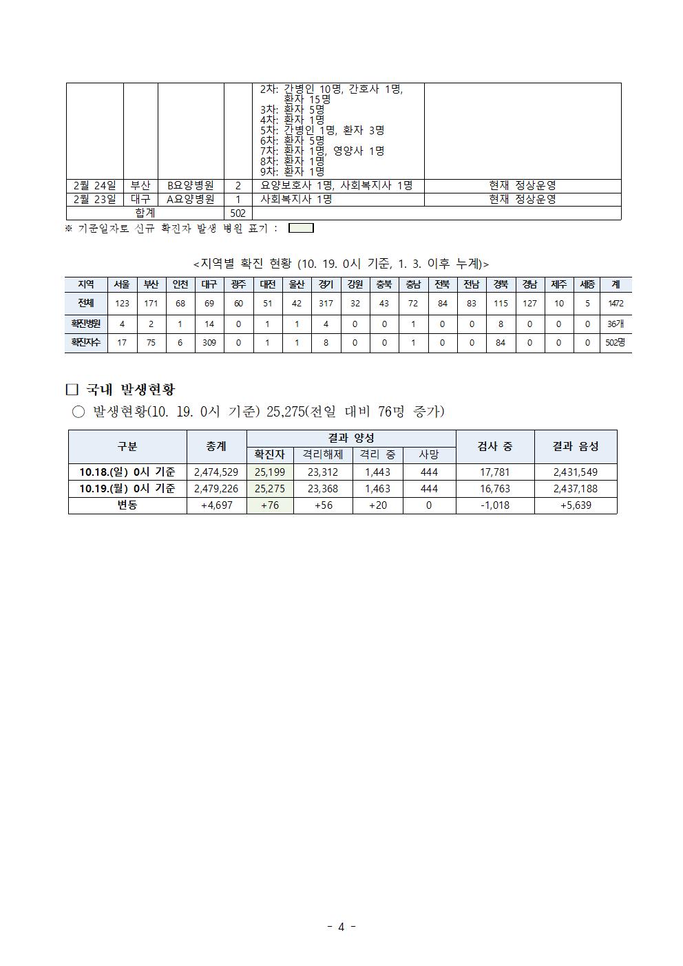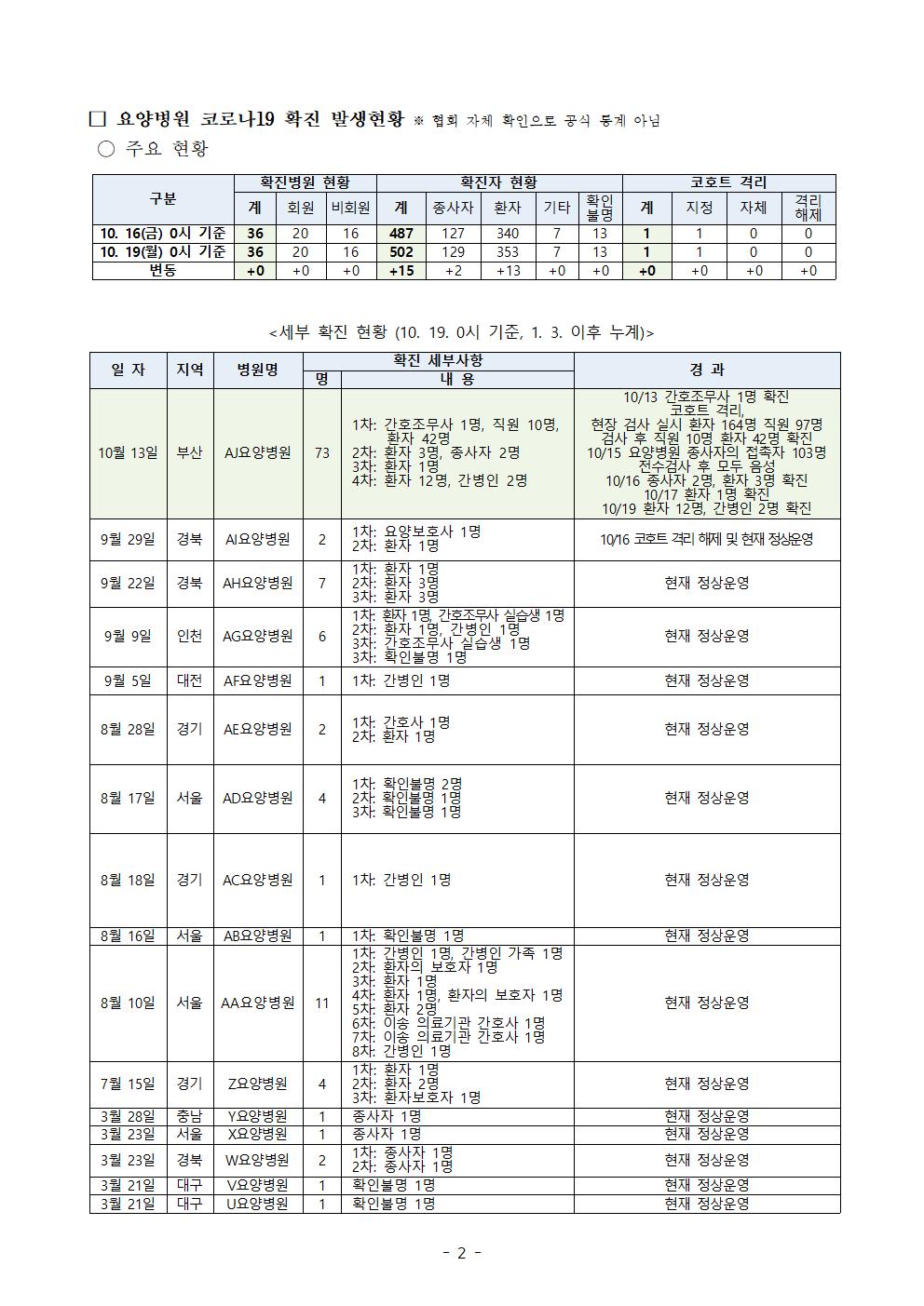 ('20.10.19.) 코로나19 요양병원 대응본부 업무보고